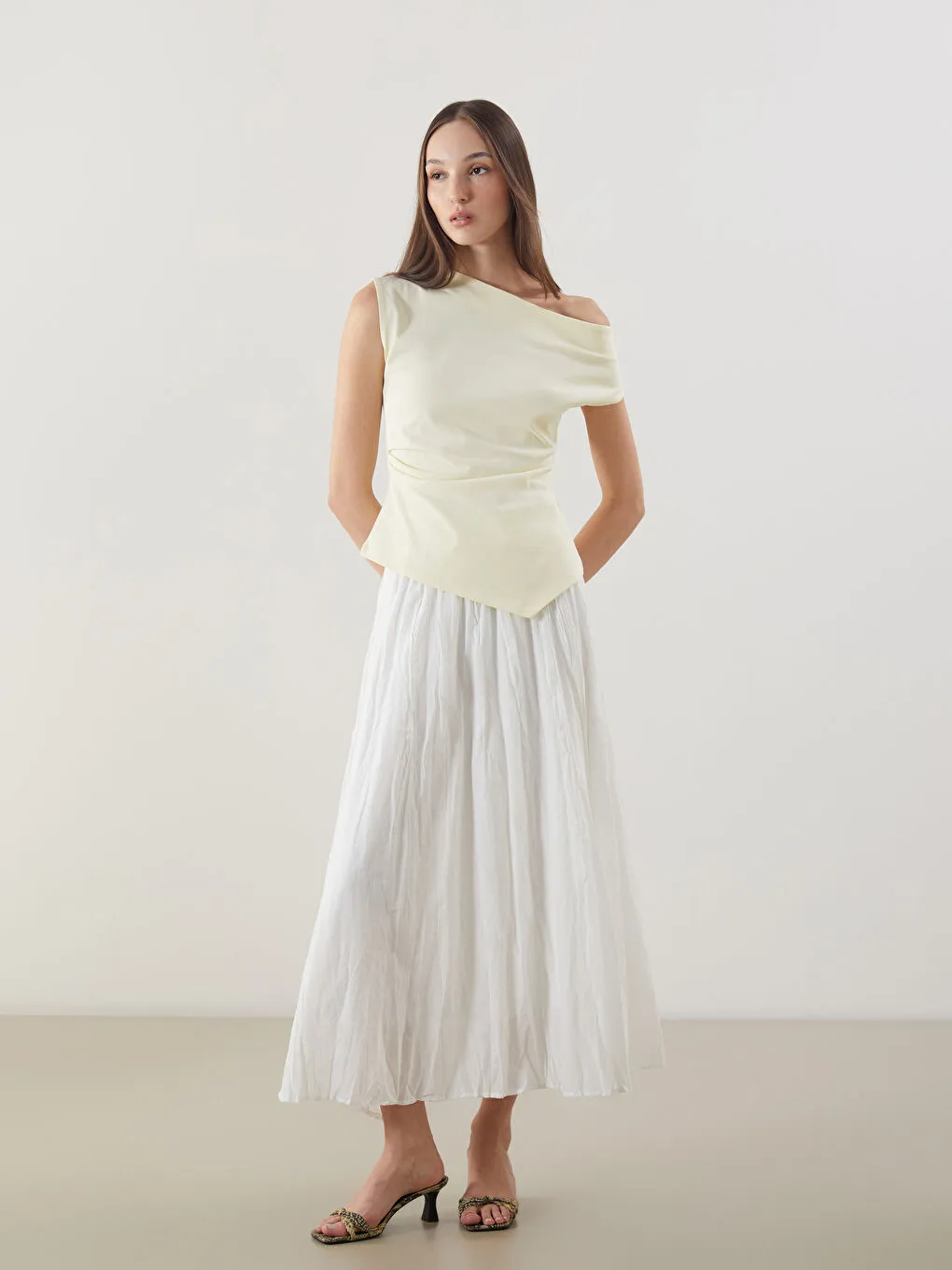• Hafif ve nefes alabilir süprem kumaşıyla gün boyu konfor sunan kayık yaka bluz, yan tarafındaki büzgü detayıyla modern bir görünüm kazandırır.